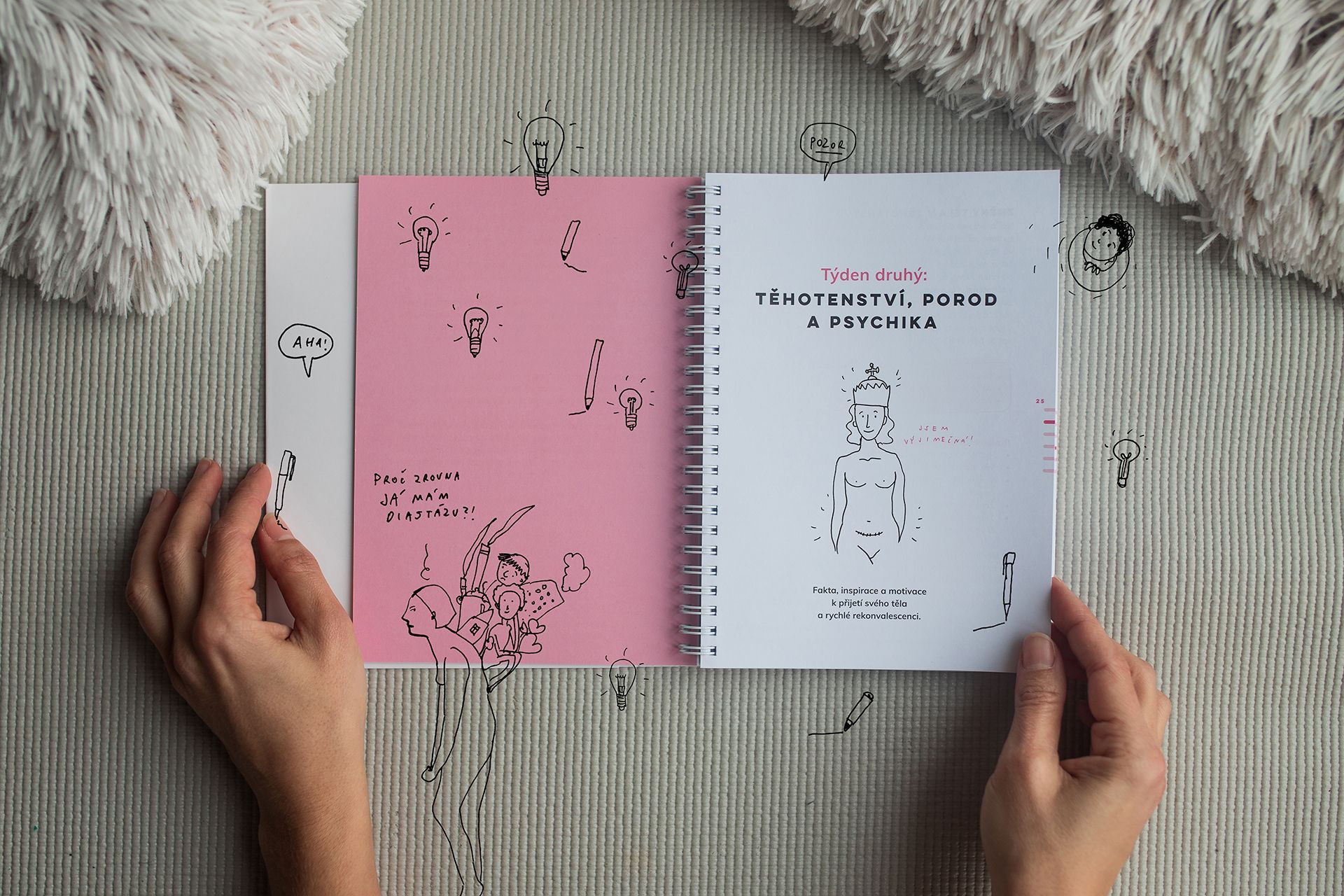 Naše spolupráce začala knihou a kartami Diastáza. Jakmile se k ženské linii začaly plánovat i materiály pro děti, vznikla potřeba jasné a ucelené značky. Místo dvou samostatných log vzniklo jedno logo zastřešující metodiku CoreYoga. To se doplnilo textovým řádkem for women nebo for kids, čímž se jasně specifikovalo zaměření.
