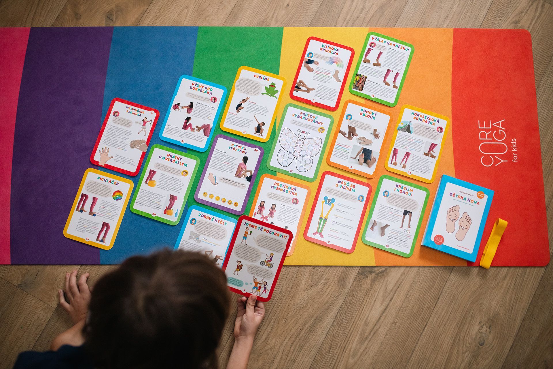 Jedno logo umožňuje rychlou identifikaci značky napříč všemi výstupy – od cvičebních karet pro děti přes cvičebnice pro ženy až po letáky a další doprovodné materiály. Současně jde o registrovanou ochrannou známku CoreYoga®, protože tak propracovaná metodika i její vizuální systém potřebují jasnou a právně chráněnou identitu. Díky tomu může značka bezpečně růst a rozšiřovat se o nové projekty či cvičební pomůcky.