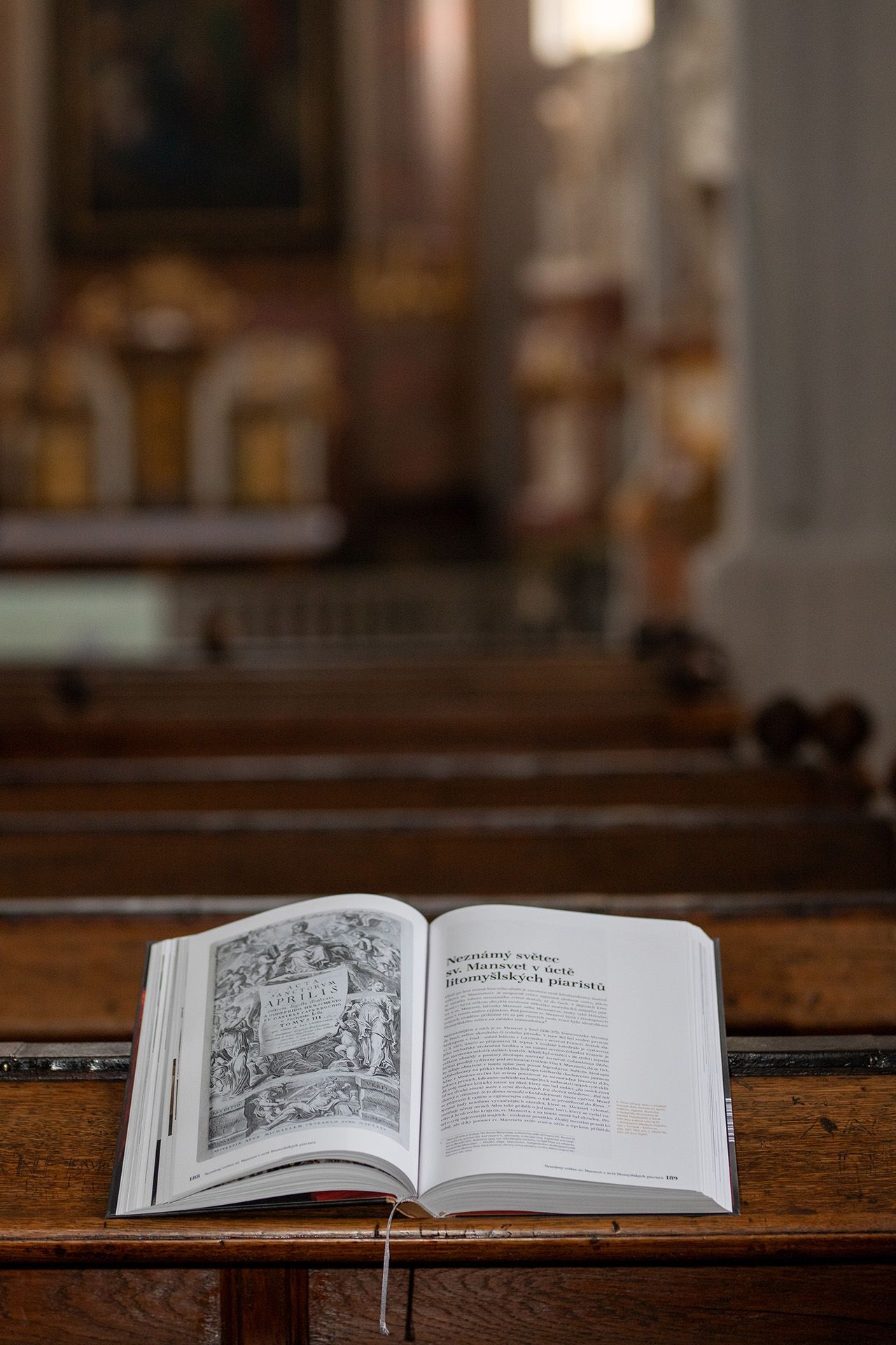 Hotovou publikaci jsme s laskavým svolením fotografovali v autentickém prostředí piaristického chrámu.
