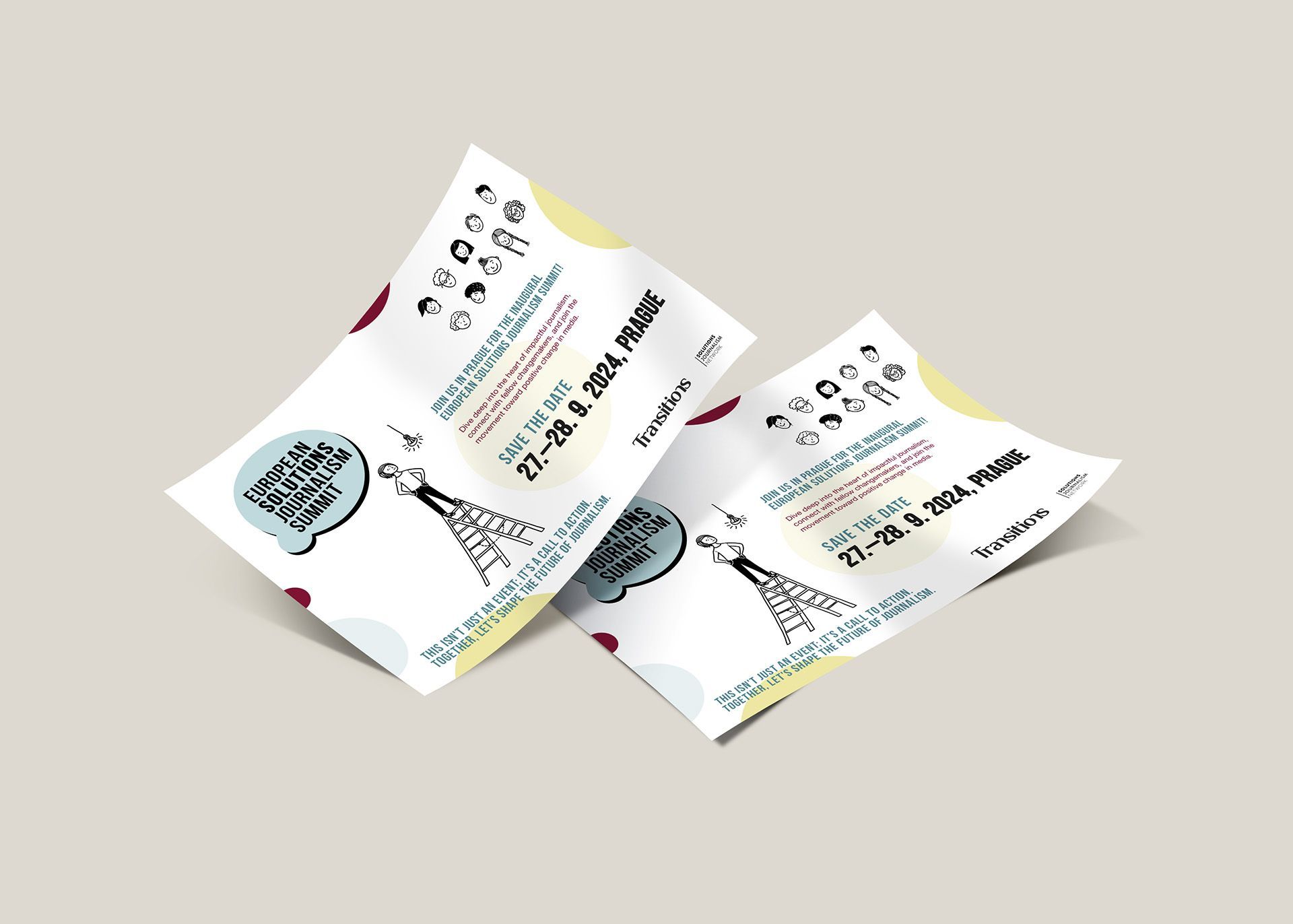 Vizuální komunikace pro mezinárodní summity Transitions vznikala s cílem vytvořit srozumitelný a pozitivní rámec pro komplexní mediální témata a vymezit se vůči alarmistickému tónu, který je v mediálním prostředí běžný. Summity se soustředí na dialog, sdílení perspektiv a hledání cest, jak věci zlepšovat. Tomu odpovídá i vizuální styl – otevřený, optimistický a přívětivý, podporující dobrou atmosféru a spolupráci mezi účastníky.